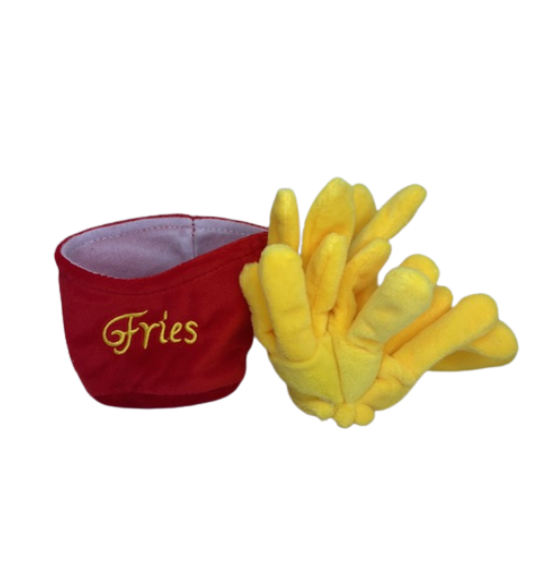 De patatjes zijn uitneembaar, waardoor je brokjes of snoepjes kan verstoppen. Ook zou je de snacks tussen de patatjes kunnen verstoppen.