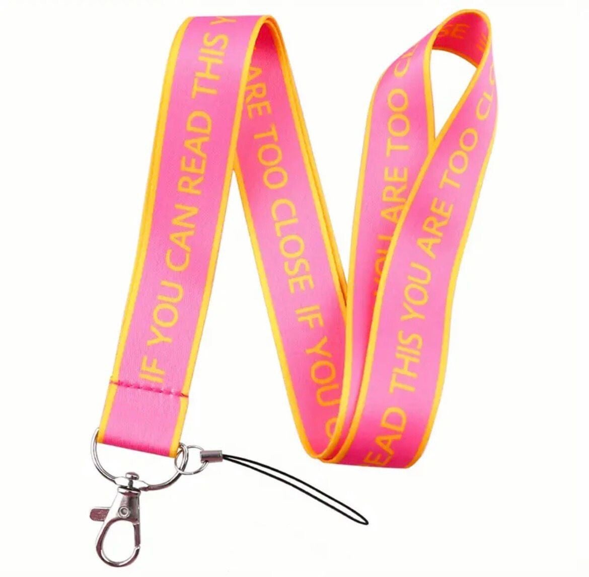 'If you can read this you are too close'Super leuke keycord, handig te gebruiken aan je sleutelbos maar ook voor aan je mobiel doormiddel van het handige mobielkoord